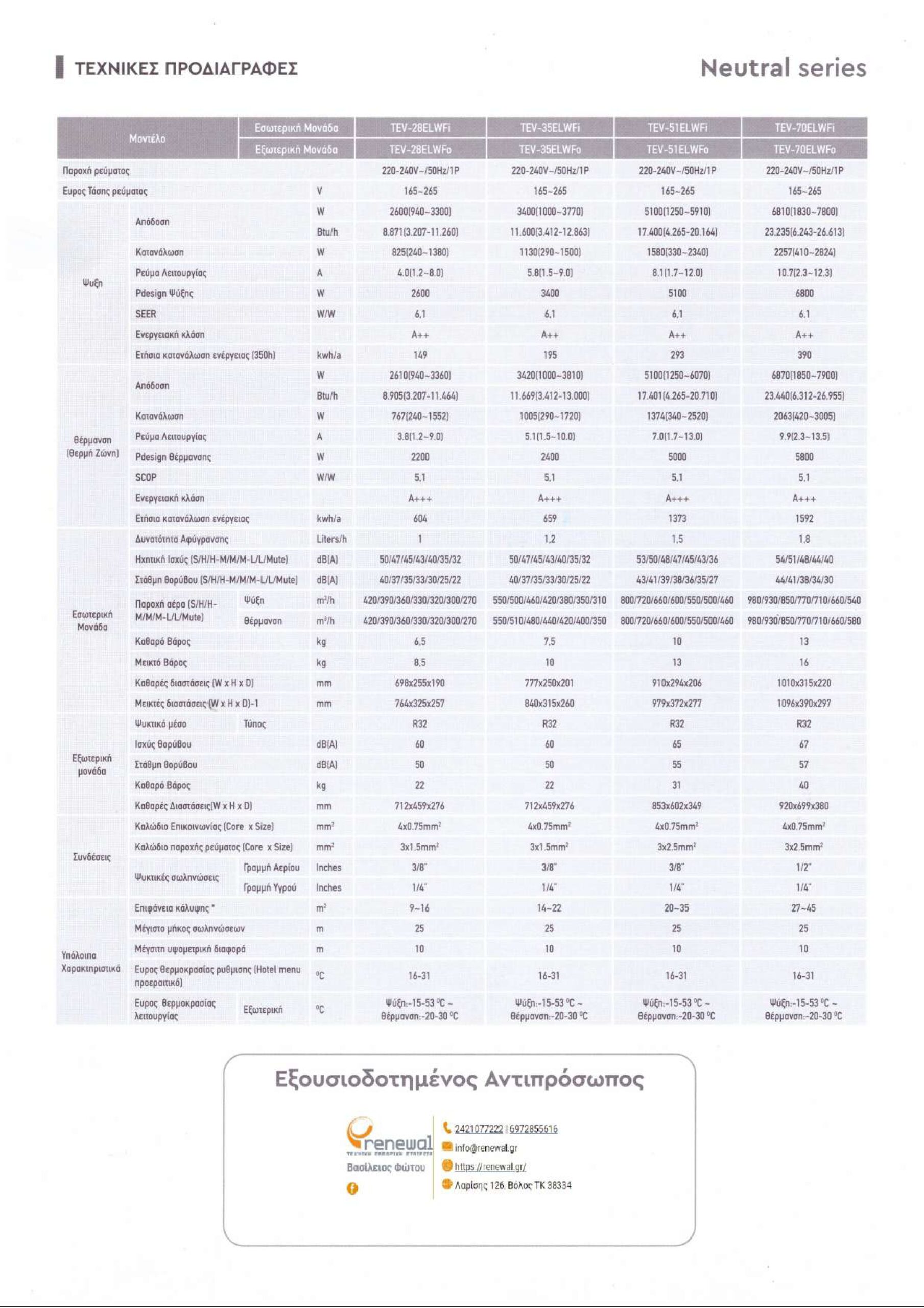 Αρχική σελίδα ΚΛΙΜΑΤΙΣΤΙΚΑ EVO Neutral EVO Neutral TEV-70ELWFi/o
